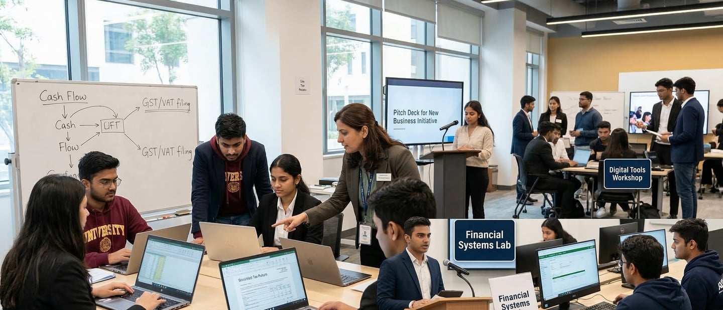 Many students graduate with degrees but lack practical exposure to areas like accounting, taxation, digital tools, business communication, and financial systems.